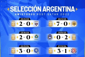 据TNT统计,2022年卡塔尔世界杯之后,阿根廷队参加11场友谊赛,全部取胜。
