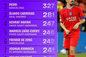 五大联赛成功过人榜:多库、库杜斯均第二 亚马尔、维尼修斯在列